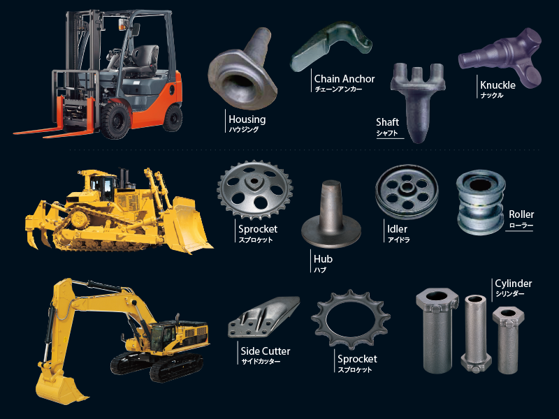 鋼材を加工した製品は、一定の断面形状に圧延されたものから造られるため、製品に加工する際の歩留りが非常に悪い。また鋳造製品は、鉄を溶かして鋳型に流し込み形を造るので、その組織にはバラツキや介在物が混入しやすく衝撃に弱い性質を持っている。しかし鍛造製品は、鋼材を鍛錬する事でより強度を増すことができます。