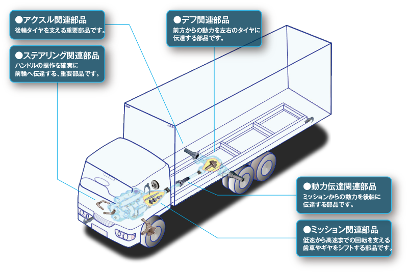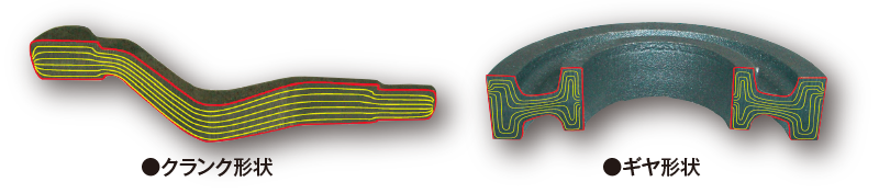 ※メタルフローは製品形状に沿っているため、衝撃に強い。鍛造品は、その強度を活かし、”走る、曲がる、止まる”を支えています。