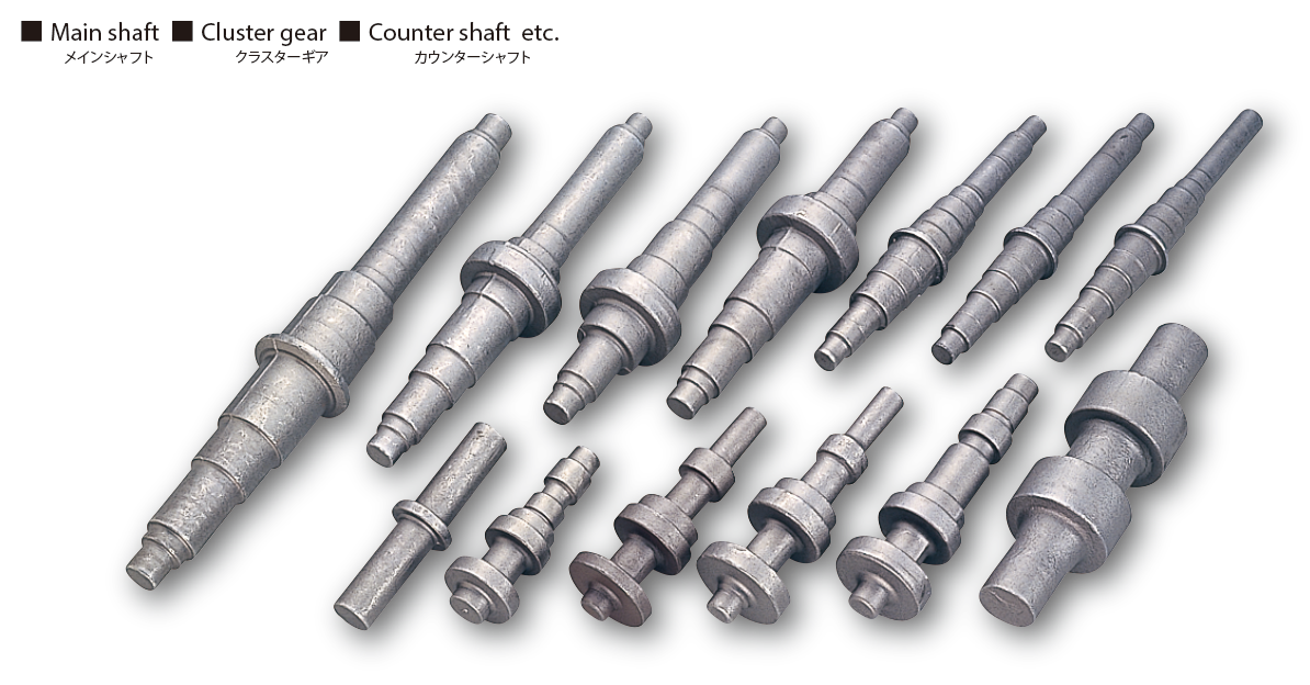 クロスロール鍛造機は、縦型の転造機としては国内でも非常に珍しく、併設のアプセットユニットとの半自動複合鍛造ラインにより、ミッション部品であるメインシャフト等を低公害・低コストで生産しています。