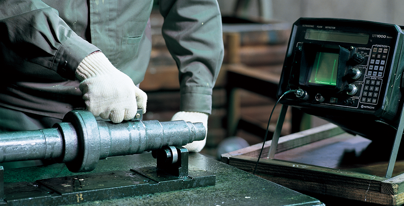 内部欠陥など表面からは見えにくいキズを検出するために、超音波振動を利用した超音波探傷装置を使用します。クロスロール鍛造のシャフト内部の欠陥検出に大いに威力を発揮します。